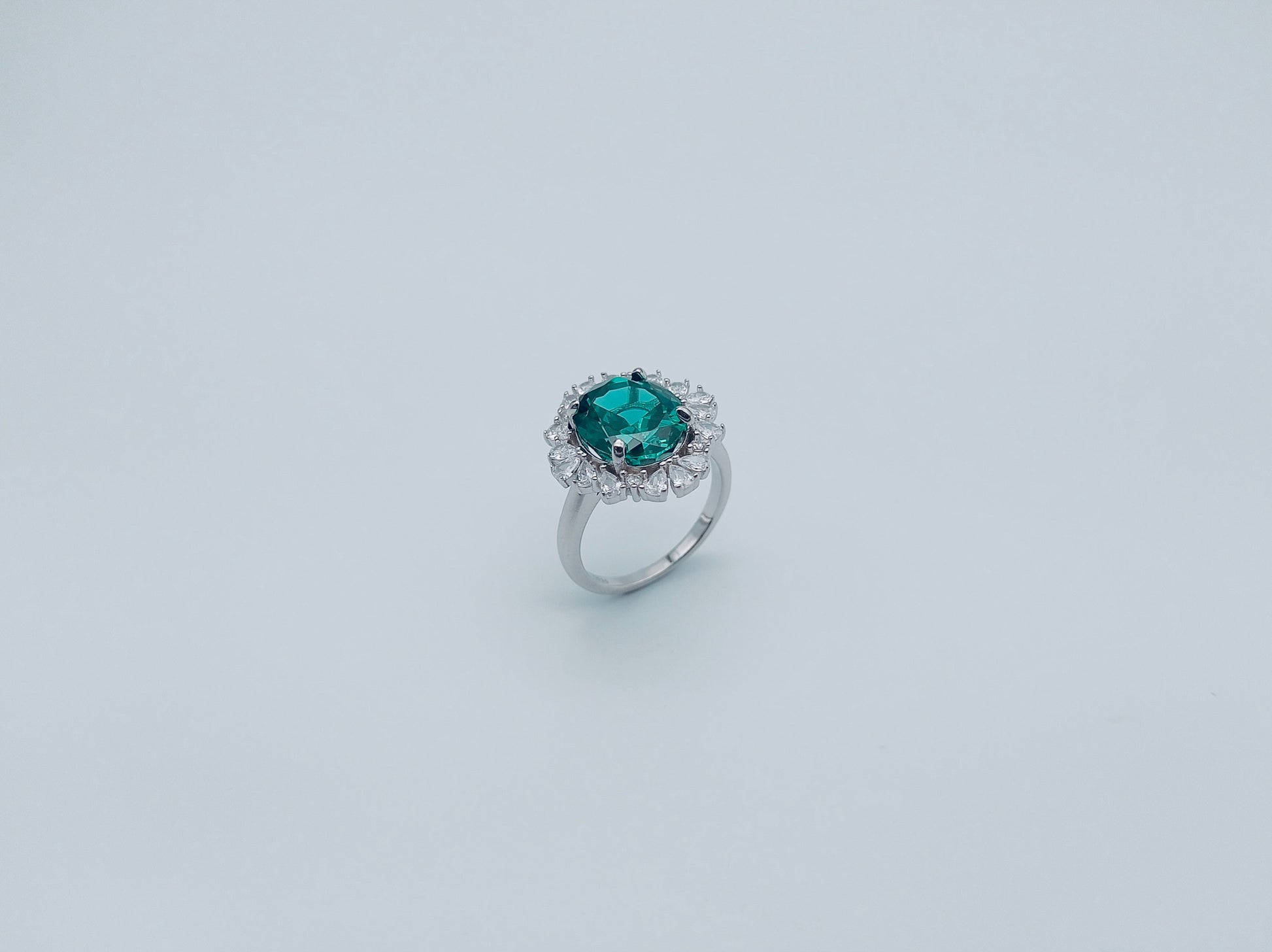 Silver Halo Green Stone Ring
